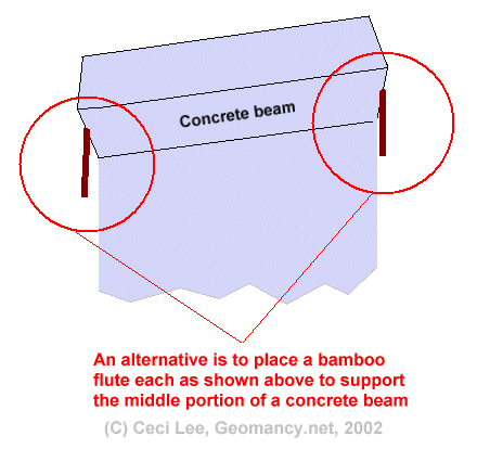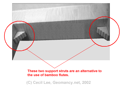 One photo shows a support strut. While another shows two bamboo flutes `holding' up the beam.