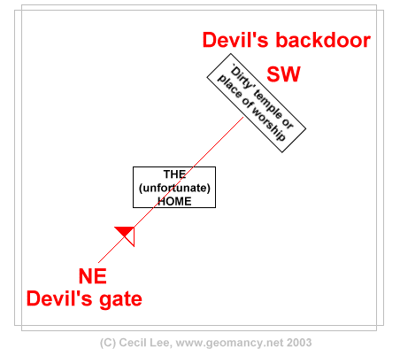 This is why, often, it was suggested that if the main door is facing NE, the should should be `tilted'. By doing so, as the spirit, cannot negotiate turns, it would `stop' them from entering the home.