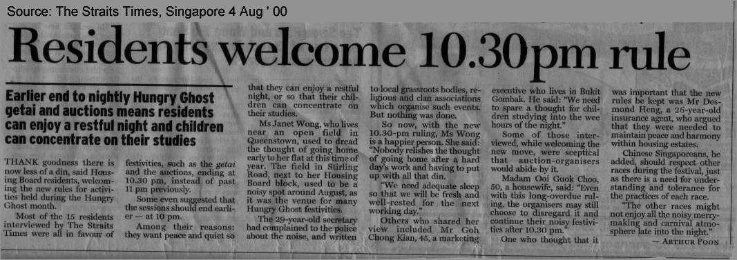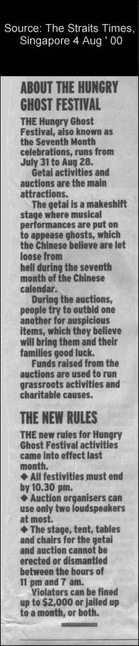 This year (2000), the hungry ghost period is from 31 July to 28 August.